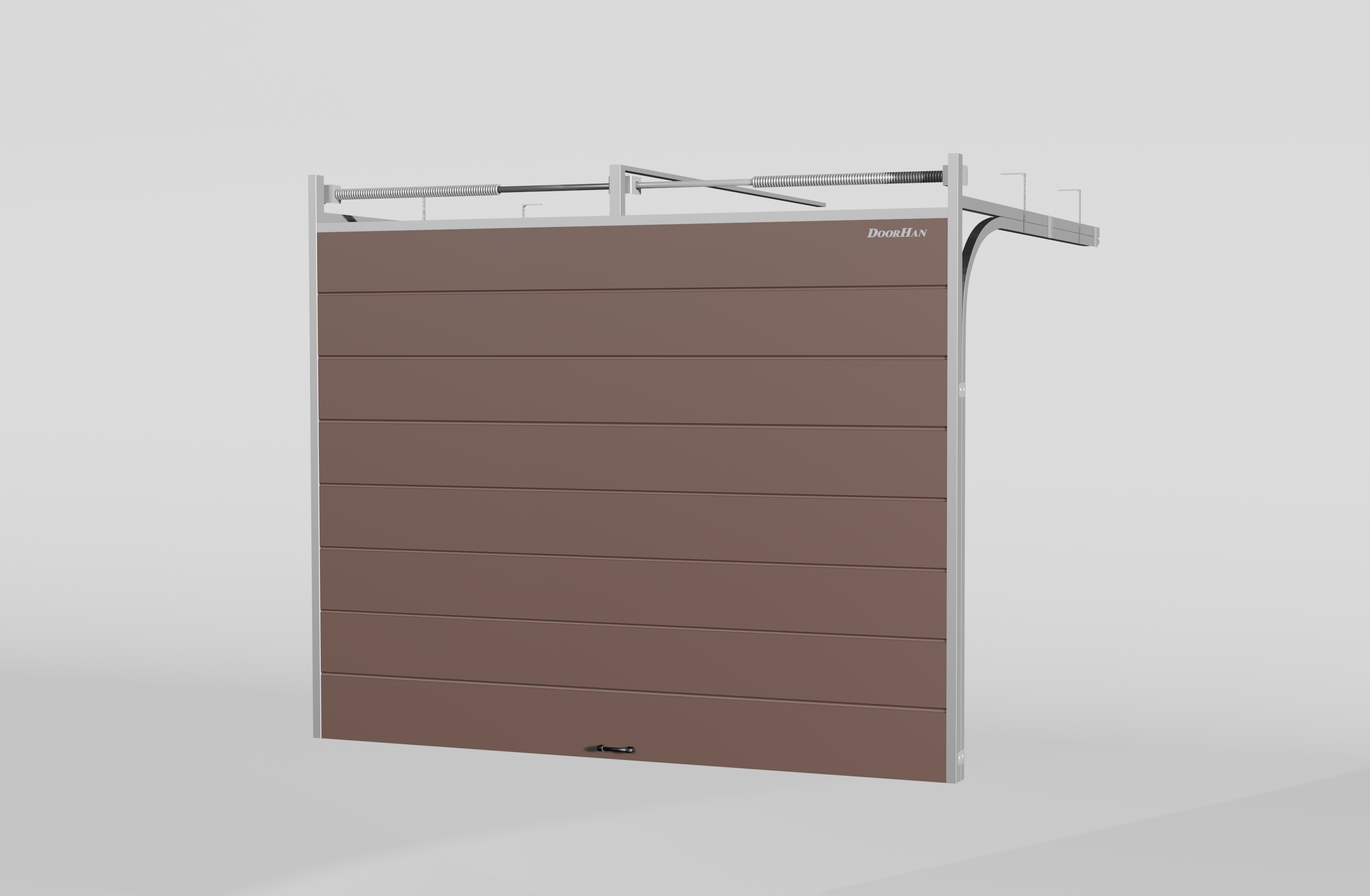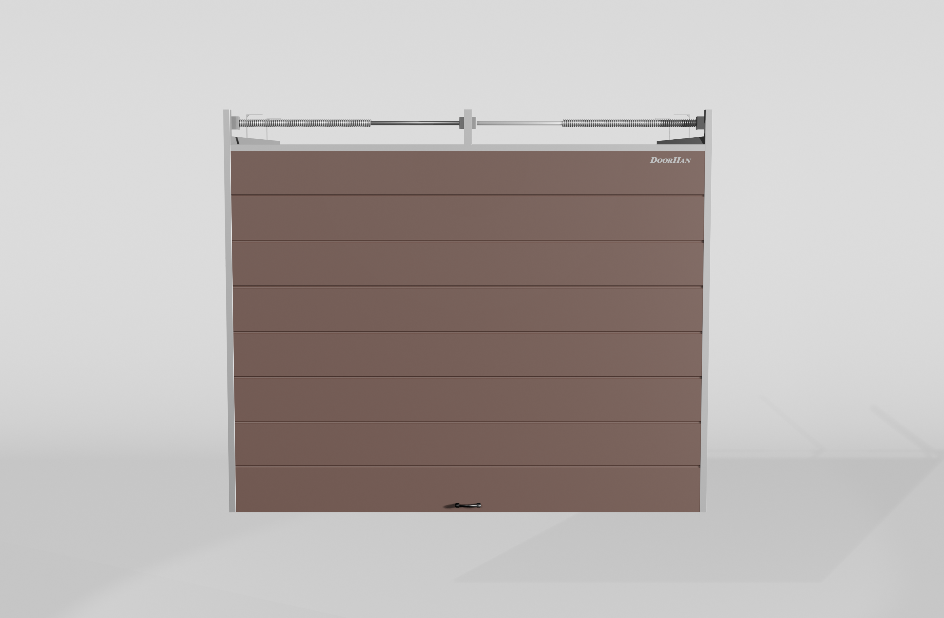 Секционные ворота DoorHan стальные 2100х2800 цвета RAL 8017 (коричнево-красный) с дизайном «широкая центральная полоса» с автоматикой - купить в Крыму | DoorHan Крым